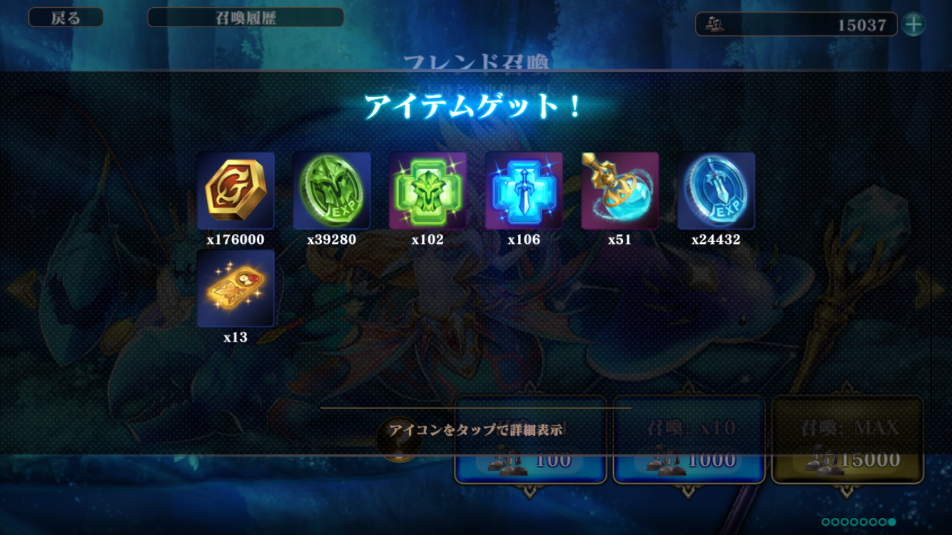 >>5154 フルオライトを集めてフレンドポイントに引き換え→フレンド召喚で育成素材集め 一回10万ポイントで回した場合、大体キャラブーストが80~100個以上、武器秘薬50個前後、探索礼状が10個以上手に入る