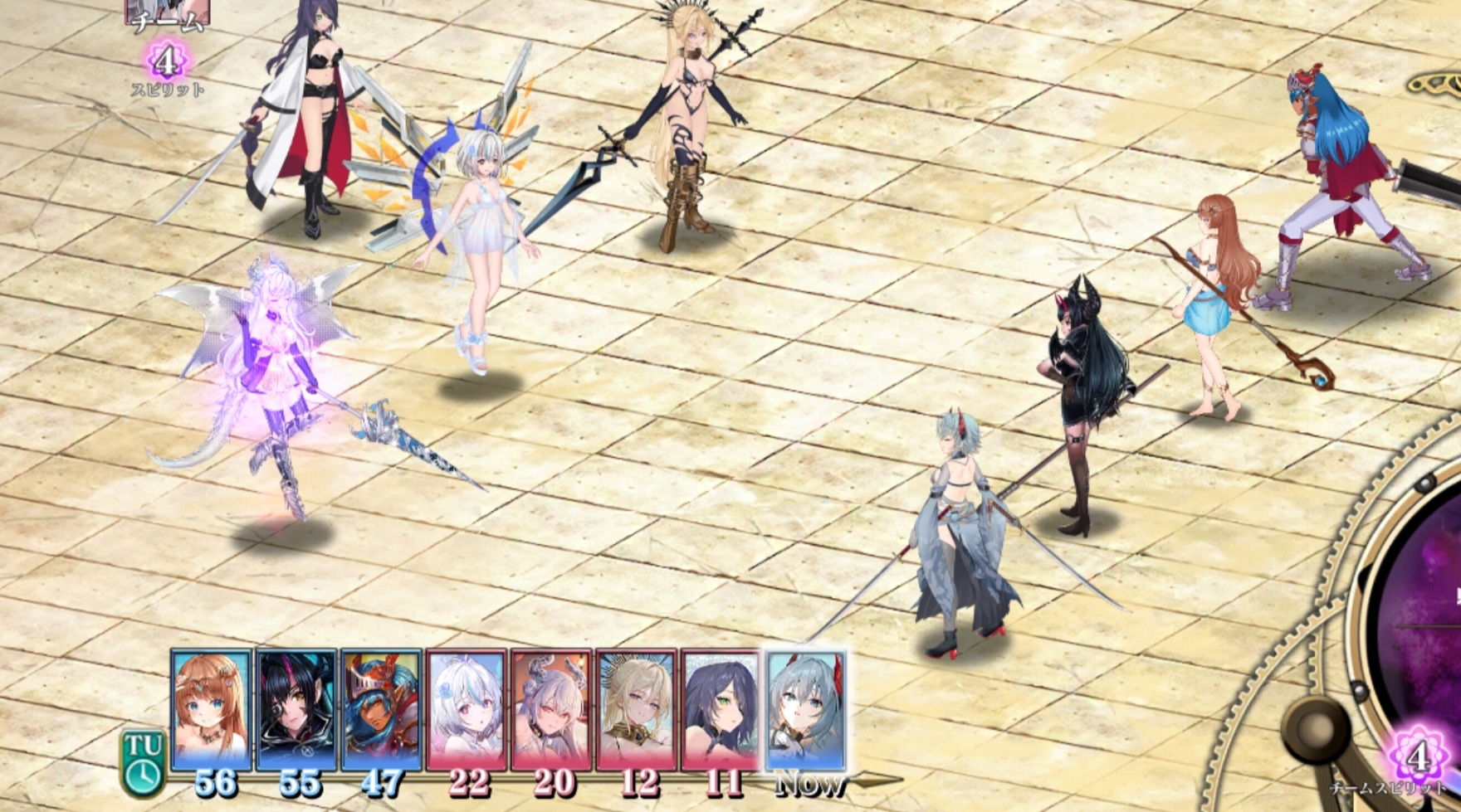 | 使用者は150TUの間、剣鬼になる。このキャラが場に出てから、攻撃で敵を1体も倒していない時のみ使用可能。また、このスキルは使用後、150TUの間ロックされる。 剣鬼の間、このキャラは以下の効果が発動する。 -敵味方問わず任意のキャラのターン終了時、自身のHPが最大値の50%分回復する。 -ちょうど2体を対象にする攻撃を受けない(場に味方が2体のみいる場合の全体攻撃などは、「2体を対象とする攻撃」に含まれない)。 -攻撃力が1.5倍される。この効果は、アンガー系の効果と重複しない。 |
