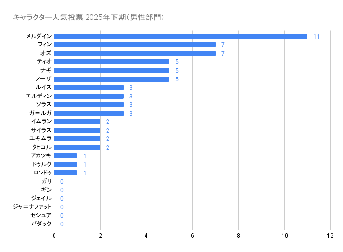 | 1位 ノーザ (前回2位) | 2位 ナギ (前回1位) | 3位 メルダイン (前回3位) | 3位 ティオ (初登場) |